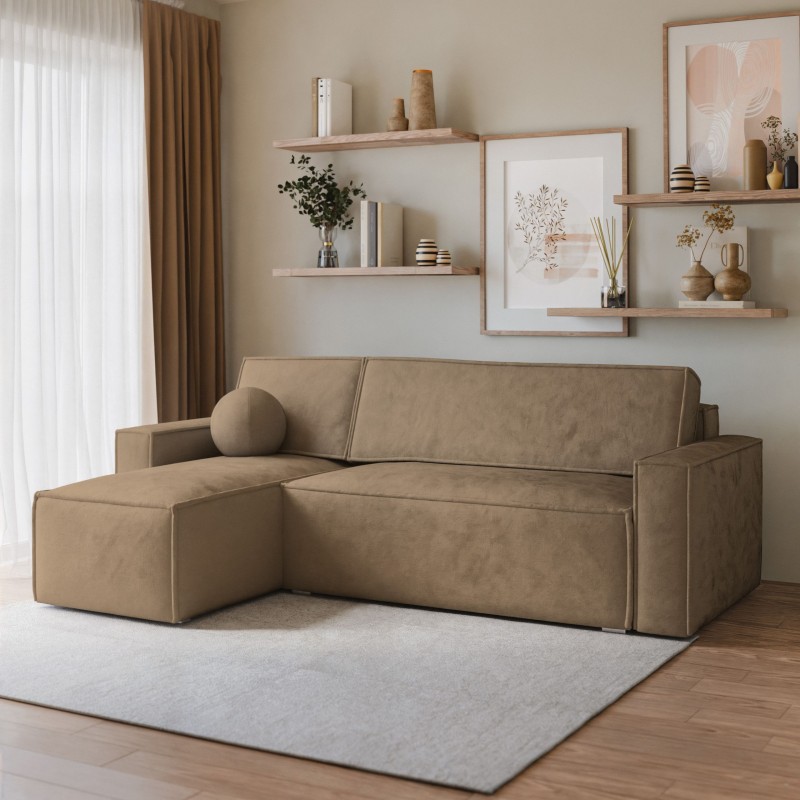 Masseno Narożnik RAVELO z funkcją spania i pojemnikiem na pościel Narozniki L, Rozkładana sofa - Beżowy, MONOLITH 09