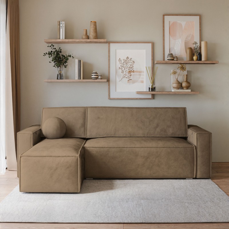 - Funkcja spania – komfort na co dzień – RAVELO posiada wbudowany mechanizm pozwalający na łatwe rozłożenie narożnika, zamieniając go w wygodne łóżko. To świetna opcja dla osób szukających komfortowego miejsca do spania dla gości lub codziennego wypoczynku.