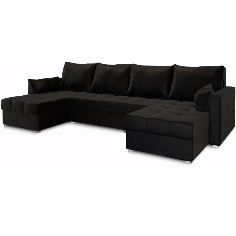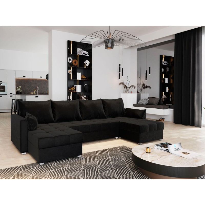 Masseno Narożnik NAKO z funkcją spania i pojemnikiem na pościel Narozniki U, Rozkładana sofa - Czarny, KRONOS 07