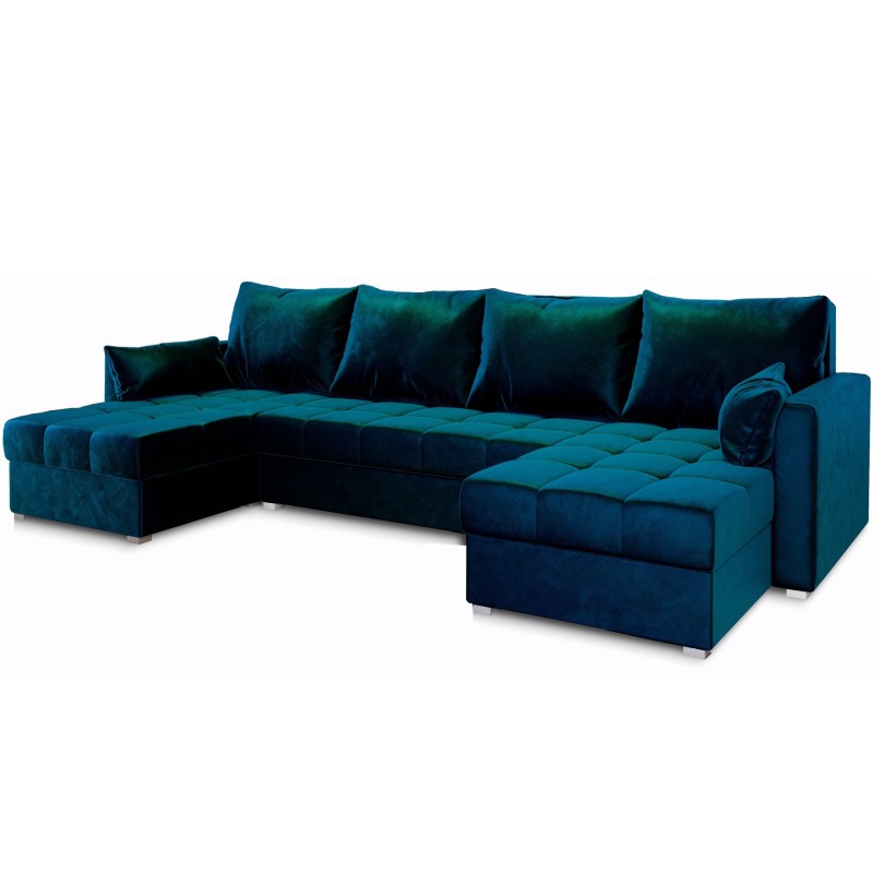 Masseno Narożnik NAKO z funkcją spania i pojemnikiem na pościel Narozniki U, Rozkładana sofa - Niebieski, KRONOS 09