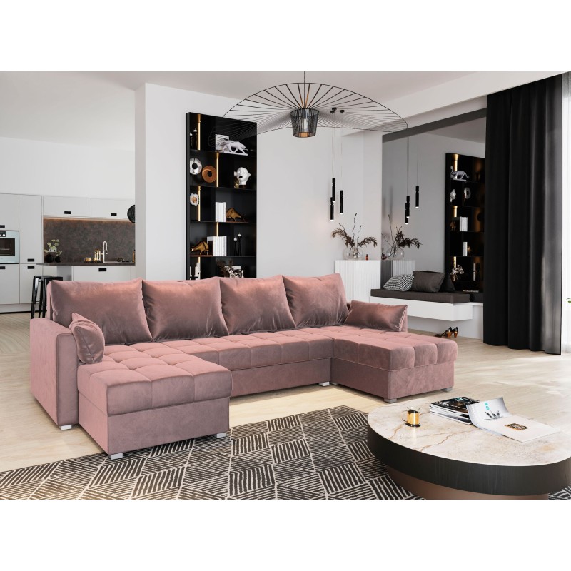 Masseno Narożnik NAKO z funkcją spania i pojemnikiem na pościel Narozniki U, Rozkładana sofa - Pudrowy róż, KRONOS 27