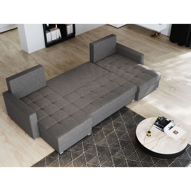 Funkcja spania w meblu jest nieocenionym dodatkiem, to praktyczne rozwiązanie zapewnia wygodne miejsce do snu. A pojemnik pod głównym siedziskiem pomoże zachować porządek w salonie, pozwalając na przechowywanie pościeli lub innych niezbędnych przedmiotów.