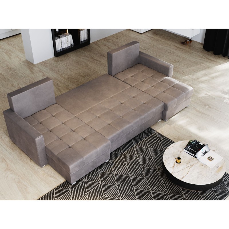 Funkcja spania w meblu jest nieocenionym dodatkiem, to praktyczne rozwiązanie zapewnia wygodne miejsce do snu. A pojemnik pod głównym siedziskiem pomoże zachować porządek w salonie, pozwalając na przechowywanie pościeli lub innych niezbędnych przedmiotów.