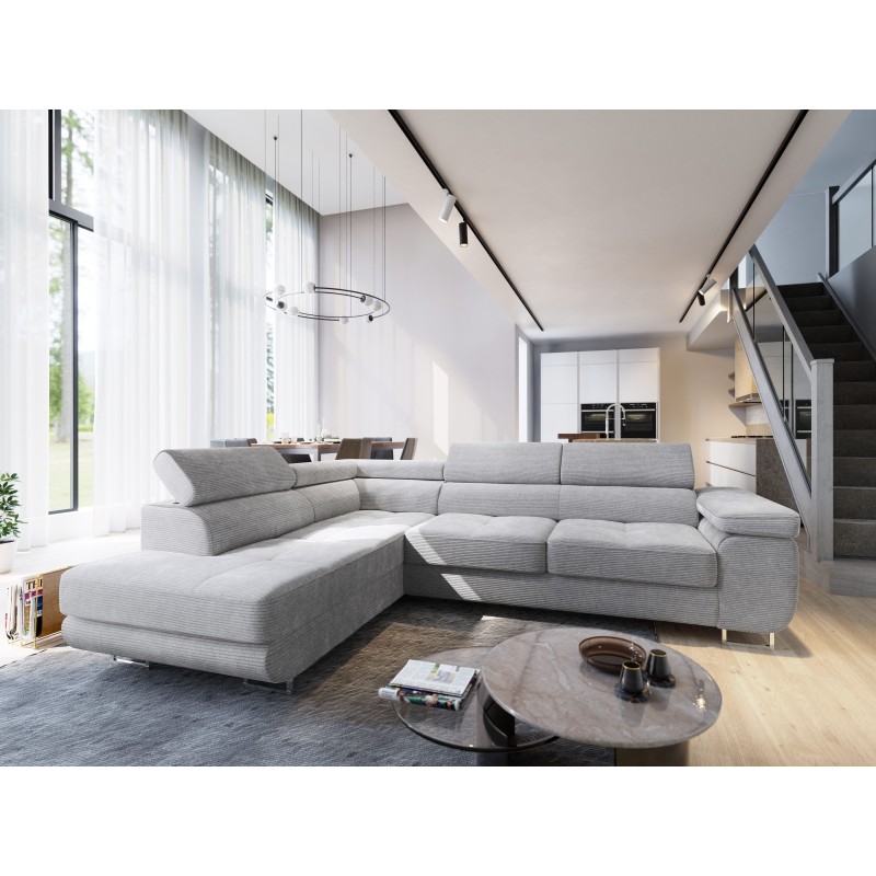 Masseno Narożnik APIRO z funkcją spania i pojemnikiem na pościel Narozniki L, Rozkładana sofa - Jasnoszary, POSO 55