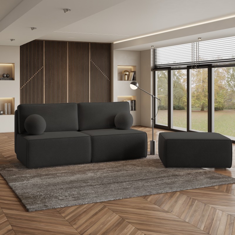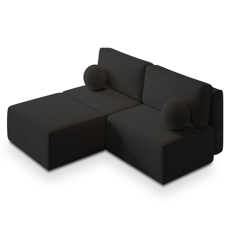 Modułowa konstrukcja – idealne dopasowanie do wnętrza – Narożnik został zaprojektowany tak, aby można było dowolnie dostawiać pufę raz z lewej, raz z prawej strony. Dzięki temu możesz w każdej chwili zmieniać aranżację przestrzeni, dostosowując ją do swoich potrzeb.