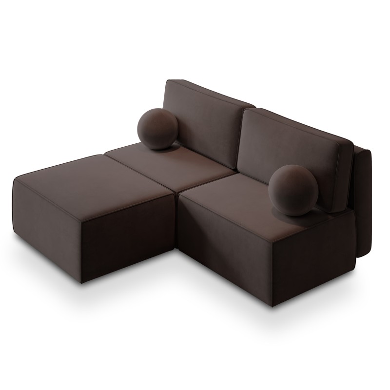 Modułowa konstrukcja – idealne dopasowanie do wnętrza – Narożnik został zaprojektowany tak, aby można było dowolnie dostawiać pufę raz z lewej, raz z prawej strony. Dzięki temu możesz w każdej chwili zmieniać aranżację przestrzeni, dostosowując ją do swoich potrzeb.