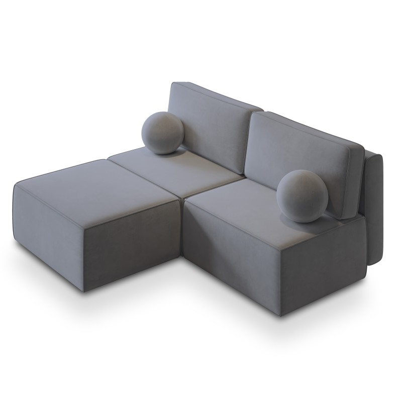 Modułowa konstrukcja – idealne dopasowanie do wnętrza – Narożnik został zaprojektowany tak, aby można było dowolnie dostawiać pufę raz z lewej, raz z prawej strony. Dzięki temu możesz w każdej chwili zmieniać aranżację przestrzeni, dostosowując ją do swoich potrzeb.