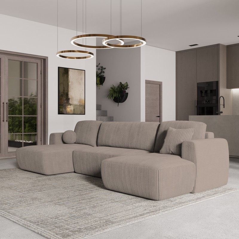 Masseno Narożnik SENTUM z funkcją spania i pojemnikiem na pościel Narozniki U, Rozkładana sofa - Beżowy, POSO 02