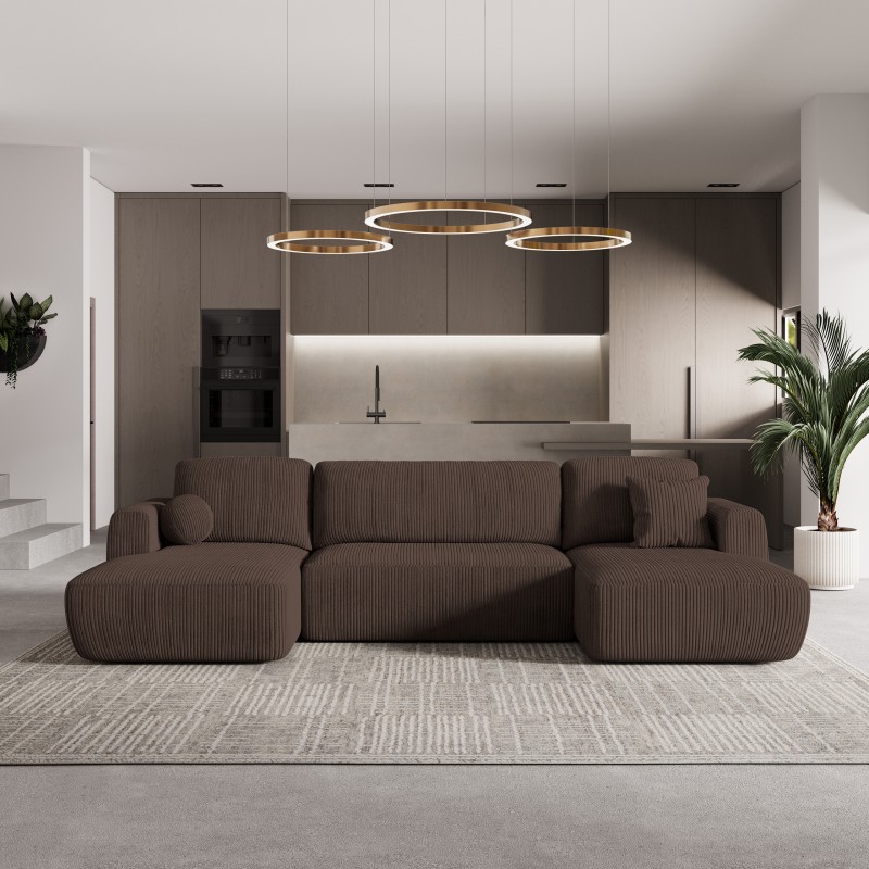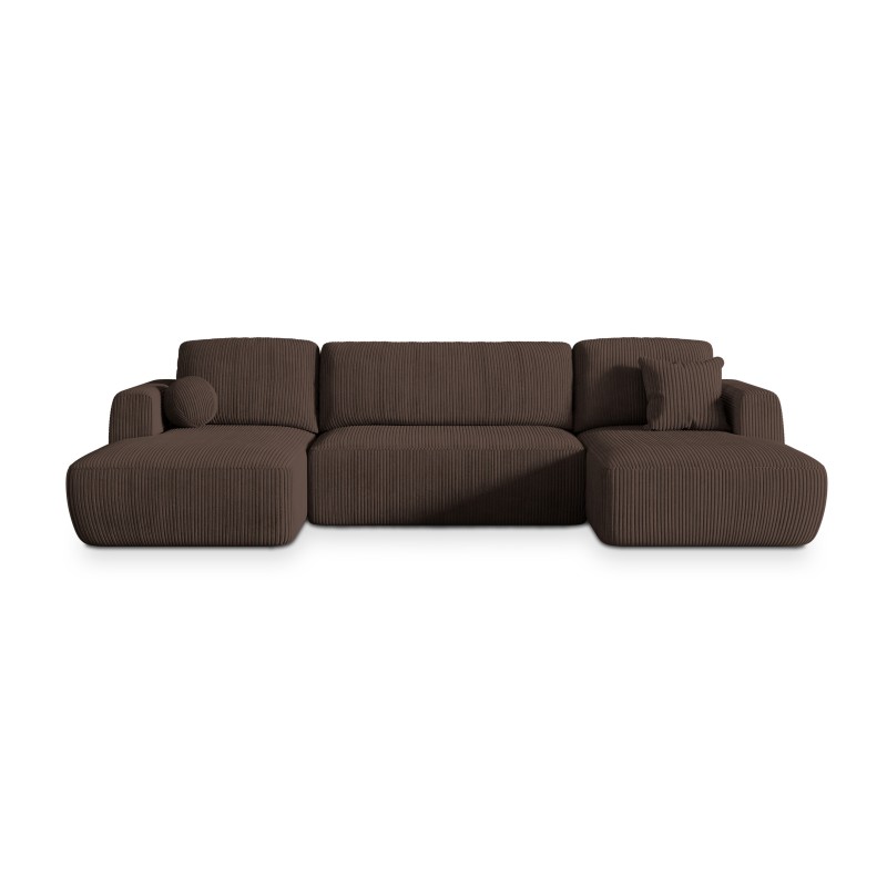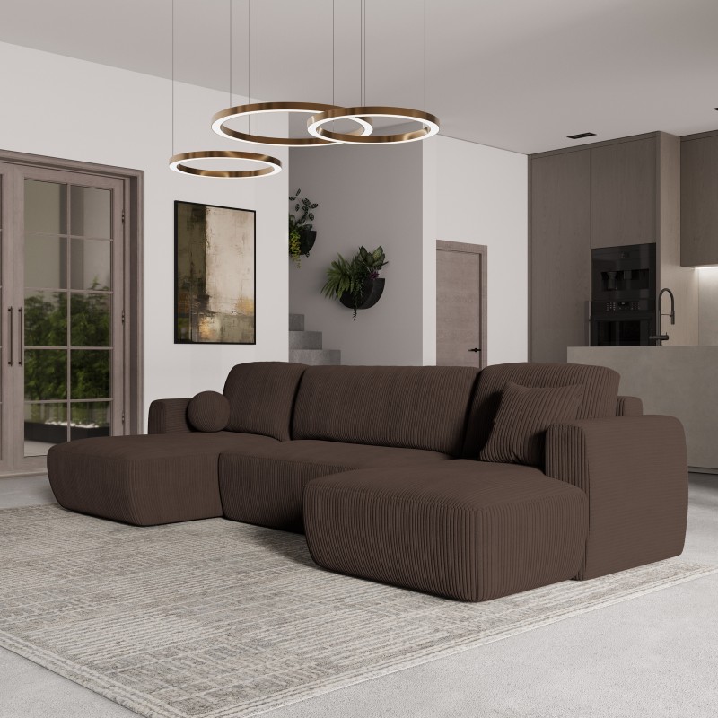 Masseno Narożnik SENTUM z funkcją spania i pojemnikiem na pościel Narozniki U, Rozkładana sofa - Brązowy, POSO 06