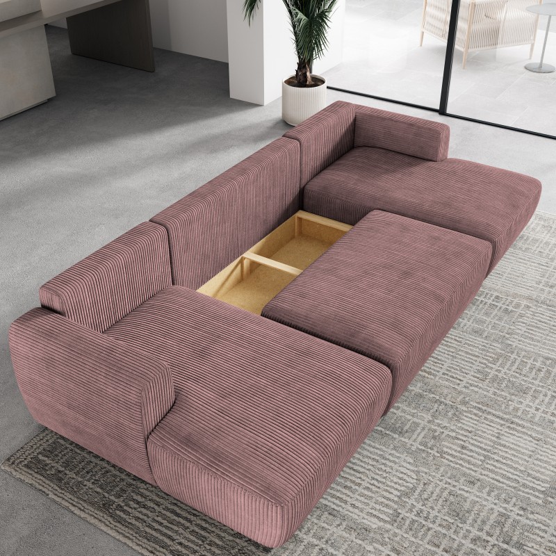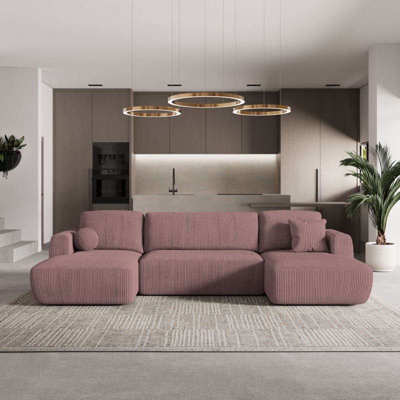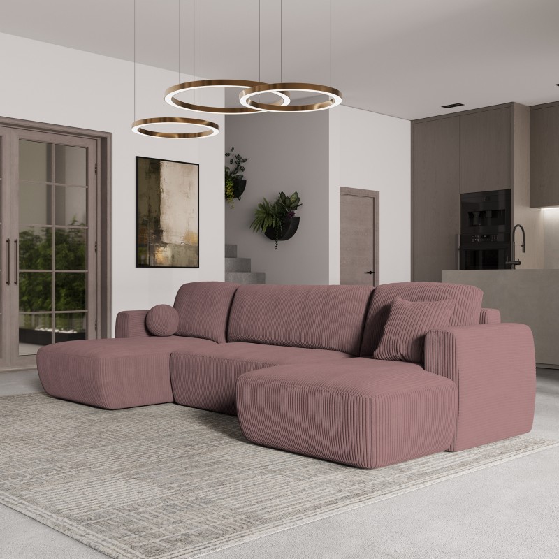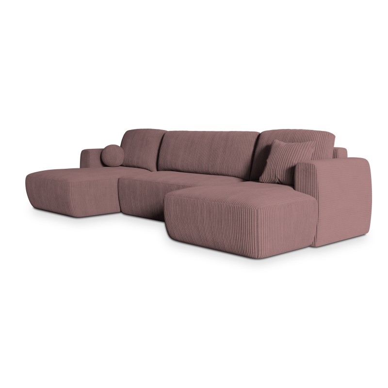 Masseno Narożnik SENTUM z funkcją spania i pojemnikiem na pościel Narozniki U, Rozkładana sofa - Wrzosowy, POSO 130