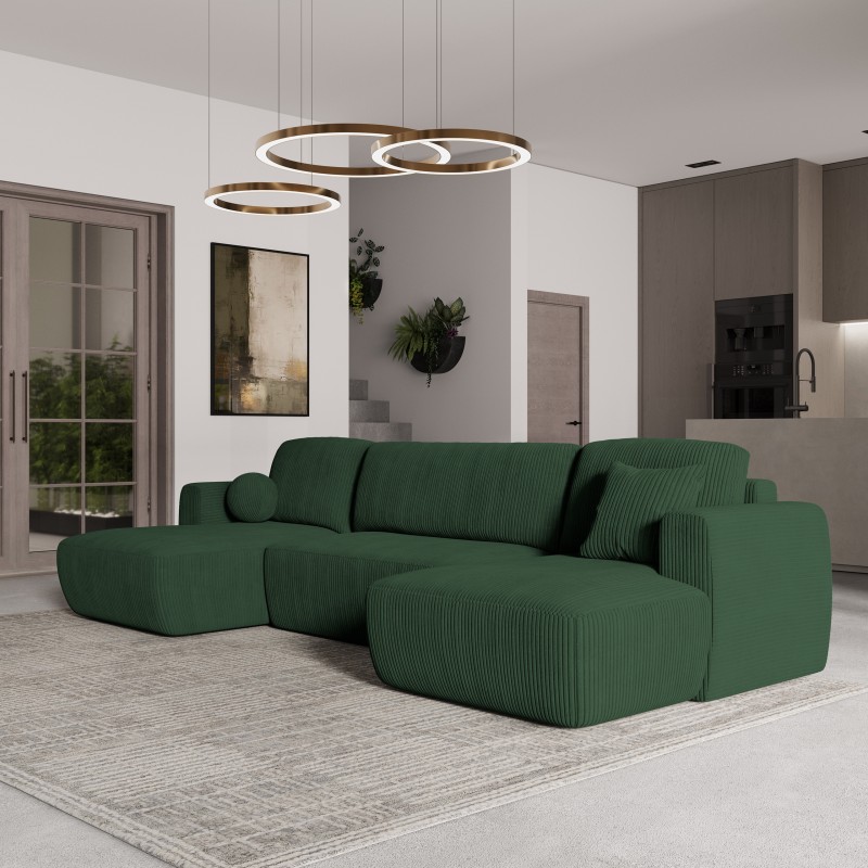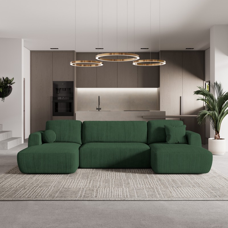 Masseno Narożnik SENTUM z funkcją spania i pojemnikiem na pościel Narozniki U, Rozkładana sofa - Zielony, POSO 14