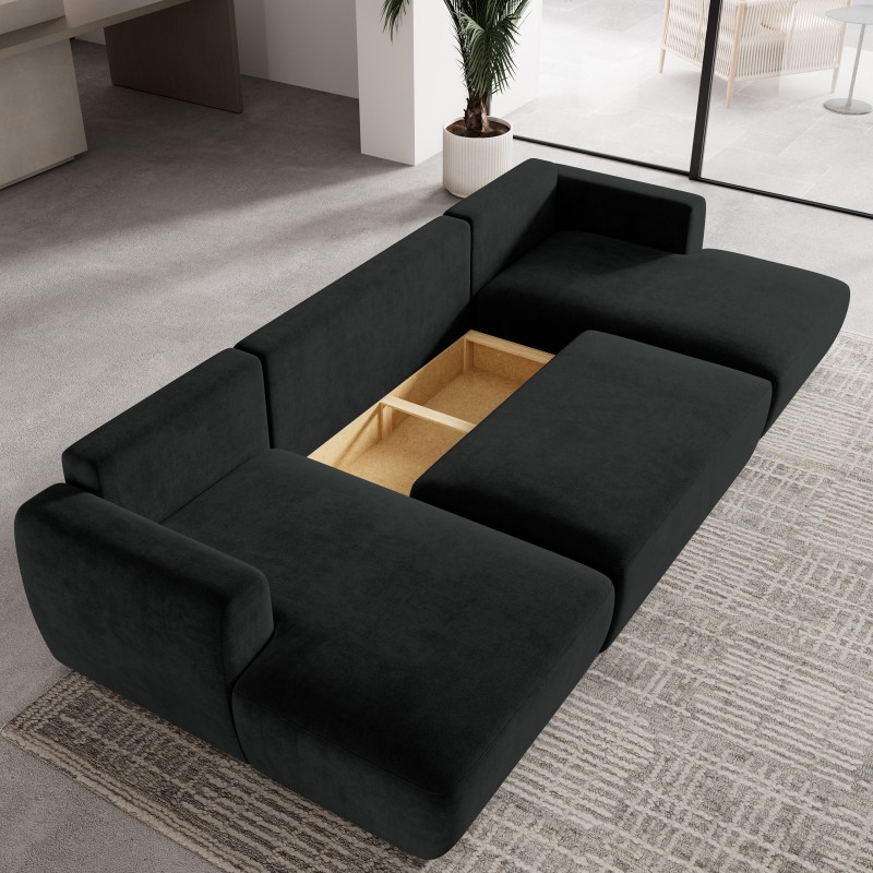 Masseno Narożnik SENTUM z funkcją spania i pojemnikiem na pościel Narozniki U, Rozkładana sofa - Czarny, KRONOS 07