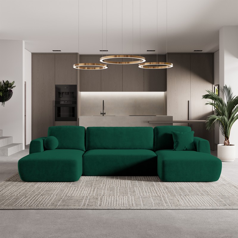 Narożnik SENTUM to duży narożnik U-kształtny, zaprojektowany dla osób poszukujących maksymalnego komfortu i przestrzeni do relaksu. Jego kształt w literę "U" sprawia, że oferuje jeszcze więcej miejsca do siedzenia, co czyni go idealnym wyborem do dużych salonów oraz wnętrz, w których liczy się zarówno design, jak i funkcjonalność. Zaoblone kształty, miękkie linie i elegancka tapicerka sprawiają, że SENTUM wprowadza do wnętrza wyjątkową atmosferę luksusu i harmonii.