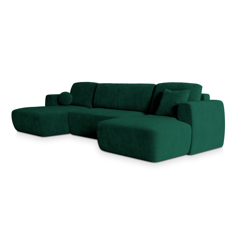 Masseno Narożnik SENTUM z funkcją spania i pojemnikiem na pościel Narozniki U, Rozkładana sofa - Butelkowa zieleń, KRONOS 19