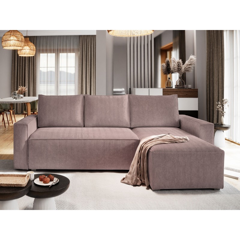 Masseno Narożnik POTARO z funkcją spania i pojemnikiem na pościel Narozniki L, Rozkładana sofa - Wrzosowy, POSO 130
