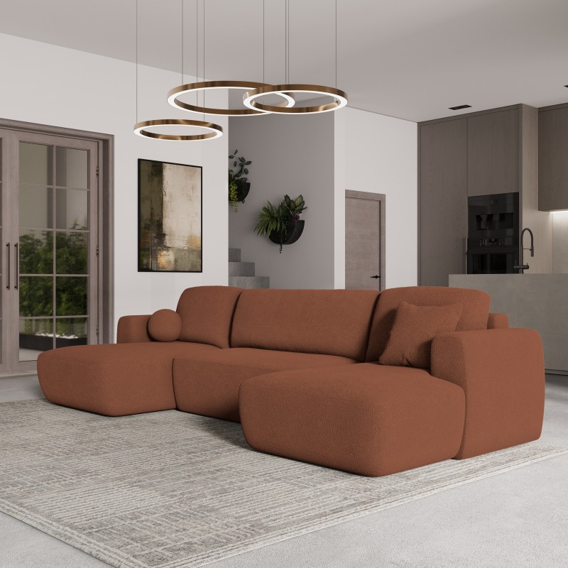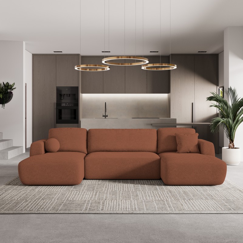 Masseno Narożnik SENTUM z funkcją spania i pojemnikiem na pościel Narozniki U, Rozkładana sofa - Ceglasty, NOW OR NEVER 54
