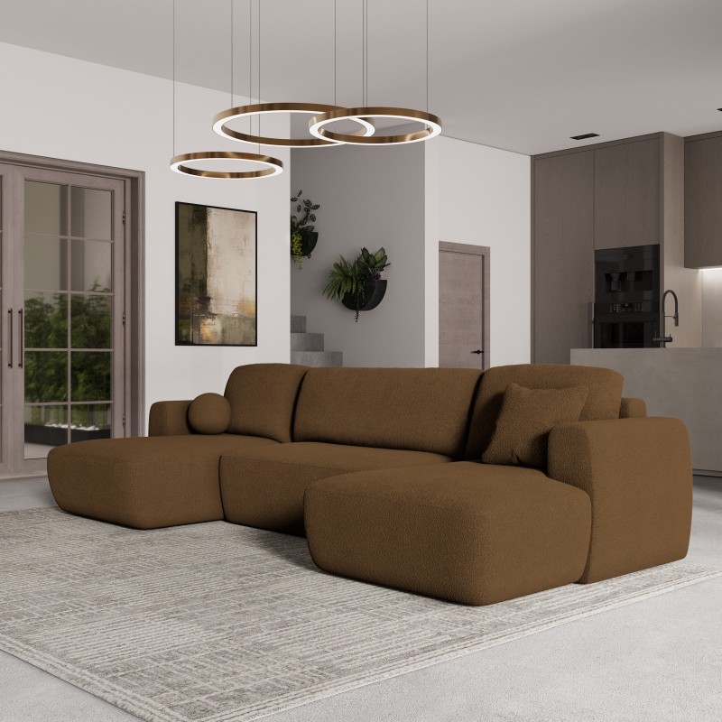 Masseno Narożnik SENTUM z funkcją spania i pojemnikiem na pościel Narozniki U, Rozkładana sofa - Brąz, NOW OR NEVER 56
