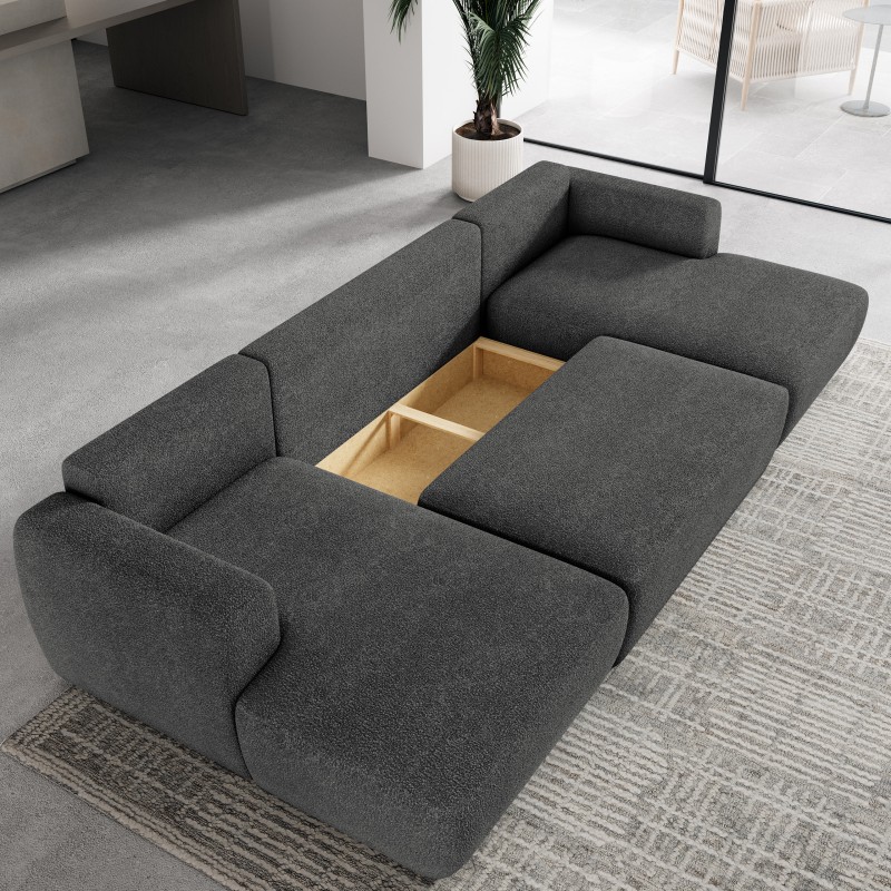 Dostępność w trzech wyjątkowych tkaninach pozwala dopasować narożnik do indywidualnych preferencji. Bukla - Now Or Never to miękkość i przytulność, sztruks - POSO dodaje strukturalnej elegancji, a velvet - Kronos wprowadza aksamitną gładkość i luksusowy wygląd.