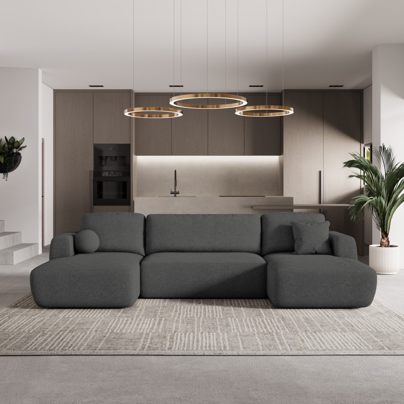 Masseno Narożnik SENTUM z funkcją spania i pojemnikiem na pościel Narozniki U, Rozkładana sofa - Szary, NOW OR NEVER 92