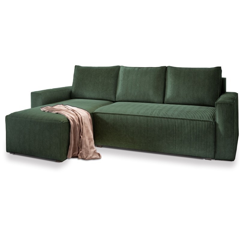 Masseno Narożnik POTARO z funkcją spania i pojemnikiem na pościel Narozniki L, Rozkładana sofa - Butelkowa zieleń, POSO 14