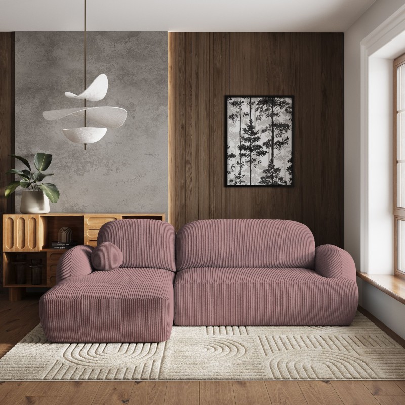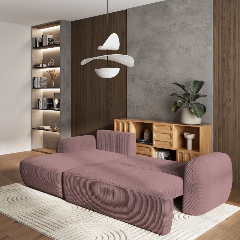 Masseno Narożnik MODENZA z funkcją spania i pojemnikiem na pościel Narozniki L, Rozkładana sofa - Wrzosowy, POSO 130