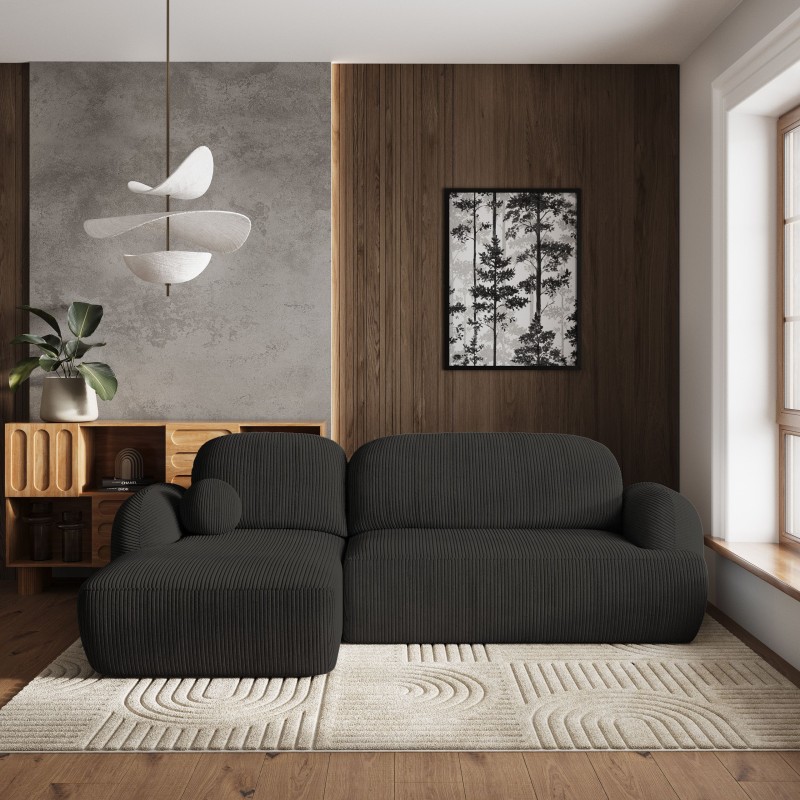 Opływowy kształt i subtelne linie nadają narożnikowi unikalny, elegancki wygląd, który doskonale komponuje się zarówno w minimalistycznych, jak i bardziej przytulnych wnętrzach.