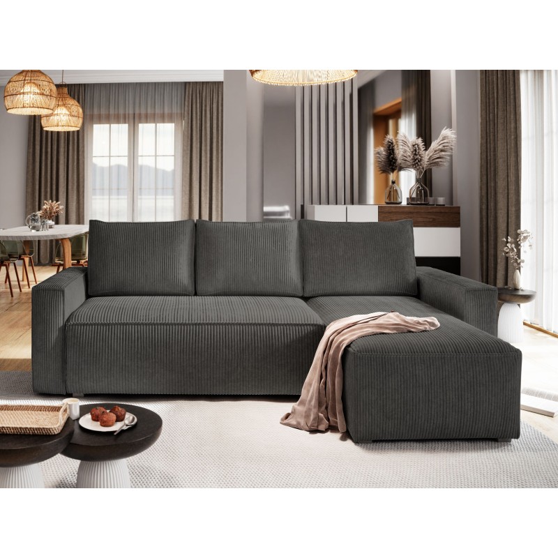 Masseno Narożnik POTARO z funkcją spania i pojemnikiem na pościel Narozniki L, Rozkładana sofa - Grafitowy, POSO 34