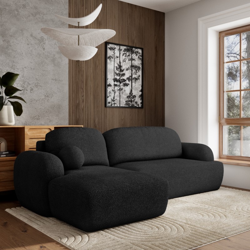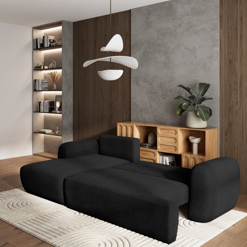 Masseno Narożnik MODENZA z funkcją spania i pojemnikiem na pościel Narozniki L, Rozkładana sofa - Czarny, NOW OR NEVER 100