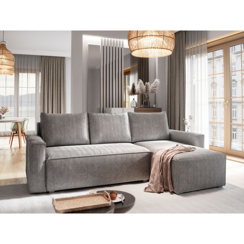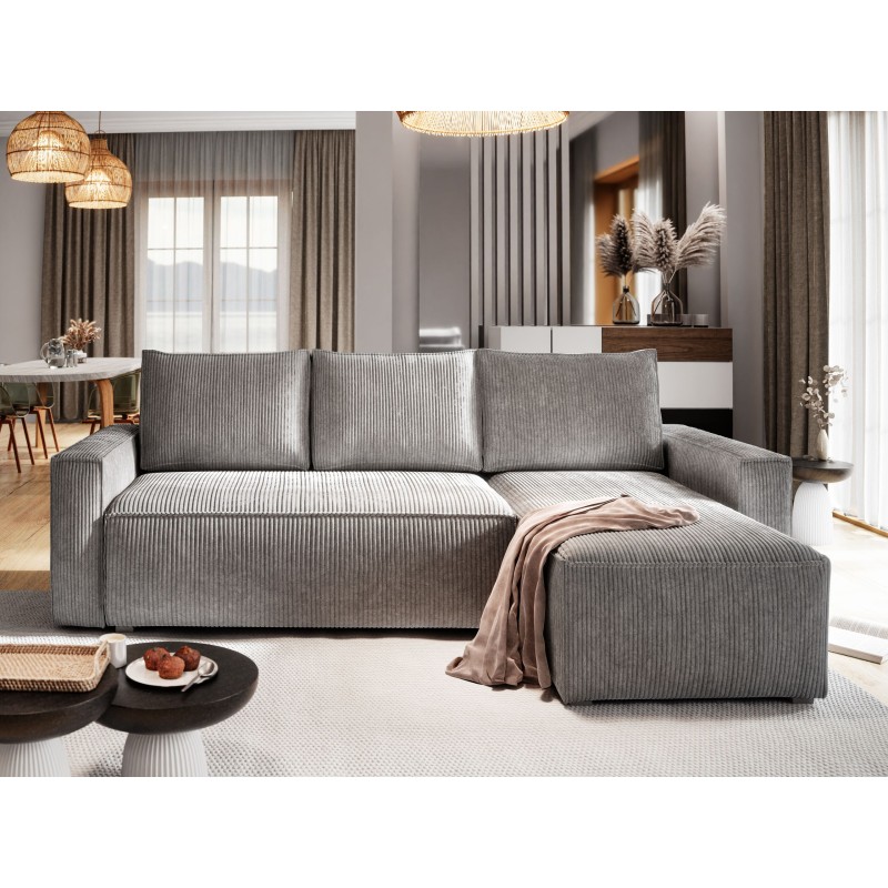 Masseno Narożnik POTARO z funkcją spania i pojemnikiem na pościel Narozniki L, Rozkładana sofa - Jasnoszary, POSO 55