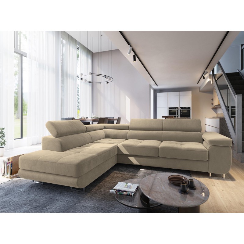 Masseno Narożnik SELVA z Funkcją Spania i Pojemnikiem na Pościel Narożnik L, Rozkładana sofa - Kremowy, MONOLITH 04