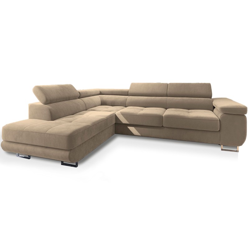 Narożnik wykonany jest z użyciem wypełnienia opartego o sprężyny faliste, trwałe i elastyczne sploty, dzięki którym narożnik zachowuje swój komfort przez cały okres użytkowania. Jednak najwyższą wygodę dodatkowo uzyskujemy dzięki regulowanym zagłówkom, rozsiądź się wygodnie przed wieczornym seansem i poczuj pełen relaks. Dodatkowo rozkładana funkcja spania sprawi, że wielogodzinny maraton filmowy będzie dla Ciebie istną przyjemnością.