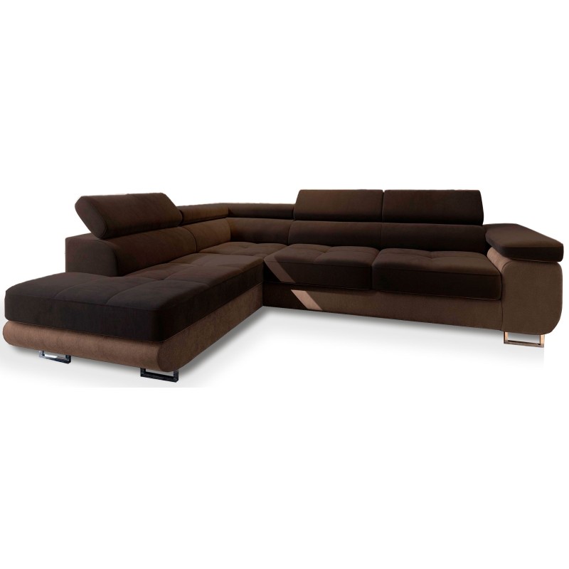 Masseno Narożnik SELVA z Funkcją Spania i Pojemnikiem na Pościel Narożnik L Rozkładana sofa – Brązowy MONOLITH 29 + MONOLITH 09