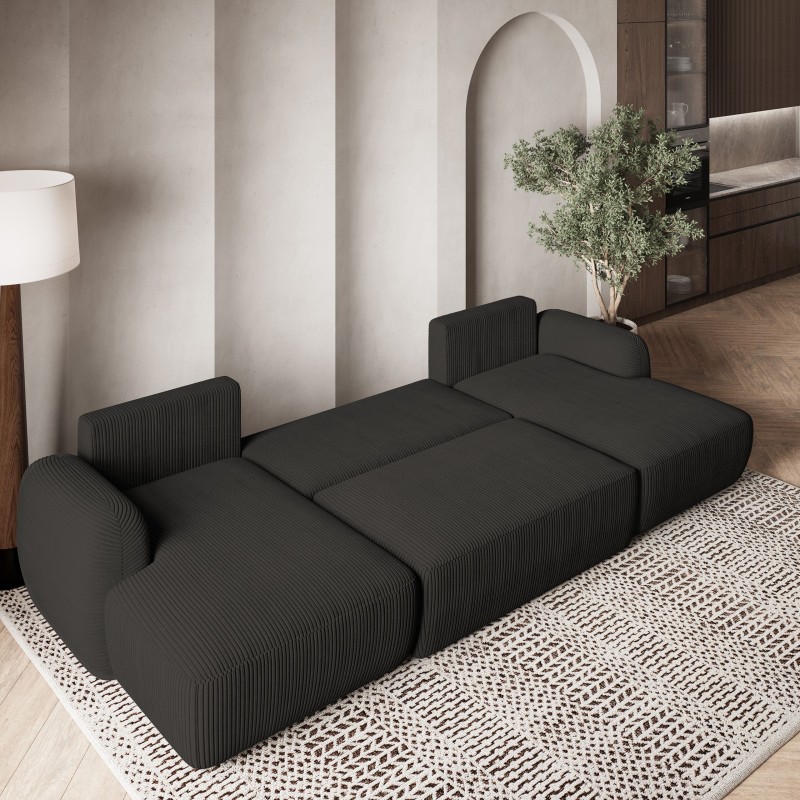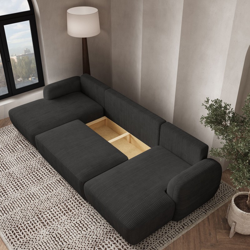 Masseno Narożnik SAVONA z funkcją spania i pojemnikiem na pościel Narozniki U, Rozkładana sofa - Czarny, POSO 135
