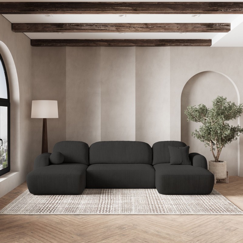 Kształt litery U – maksimum przestrzeni do wypoczynku. Szeroka forma narożnika zapewnia komfortową przestrzeń do siedzenia i relaksu dla całej rodziny. To idealny wybór do dużych salonów i otwartych wnętrz.
