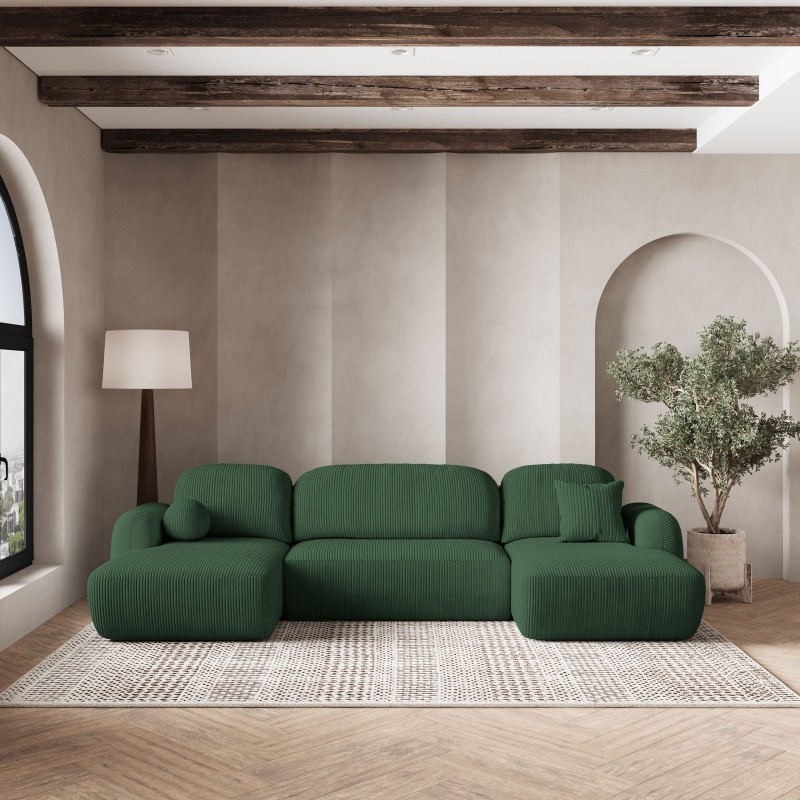 Masseno Narożnik SAVONA z funkcją spania i pojemnikiem na pościel Narozniki U, Rozkładana sofa - Zielony, POSO 14
