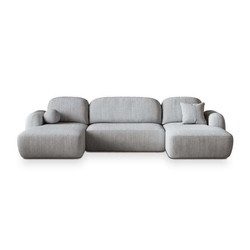 Kształt litery U – maksimum przestrzeni do wypoczynku. Szeroka forma narożnika zapewnia komfortową przestrzeń do siedzenia i relaksu dla całej rodziny. To idealny wybór do dużych salonów i otwartych wnętrz.
