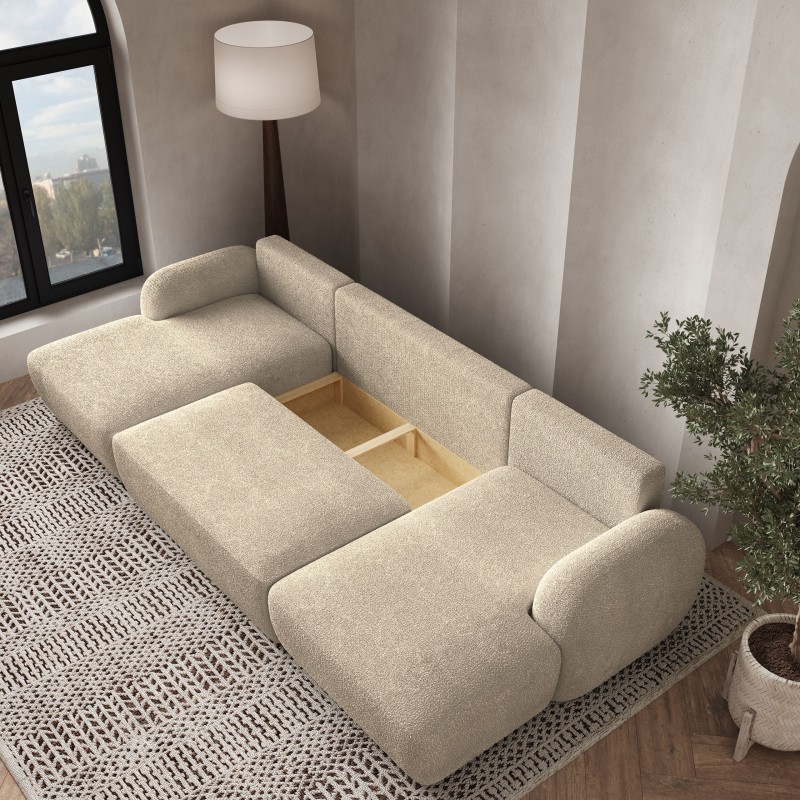 Masseno Narożnik SAVONA z funkcją spania i pojemnikiem na pościel Narozniki U, Rozkładana sofa - Kremowy, NOW OR NEVER 02