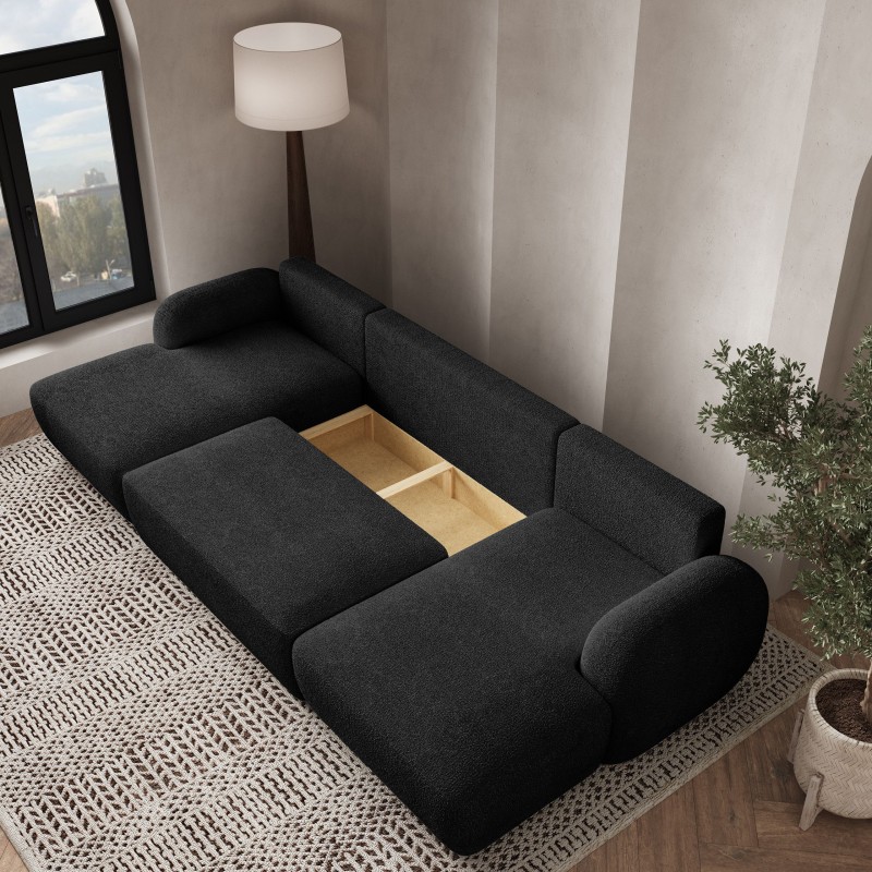 Masseno Narożnik SAVONA z funkcją spania i pojemnikiem na pościel Narozniki U, Rozkładana sofa - Czarny, NOW OR NEVER 100
