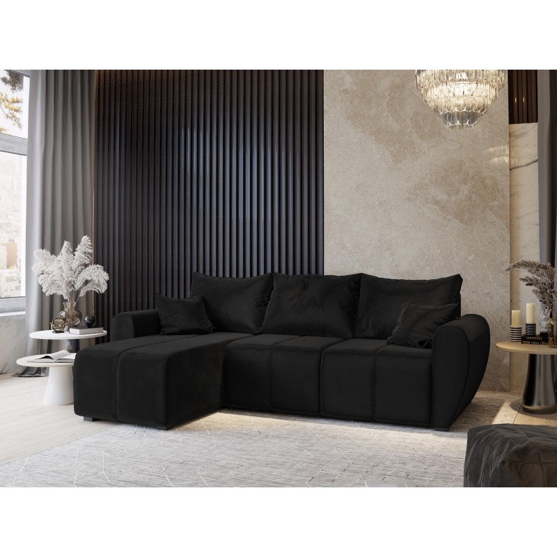 Masseno Narożnik MADISON z funkcją spania i pojemnikiem na pościel Narozniki L, Rozkładana sofa - Czarny, KRONOS 07