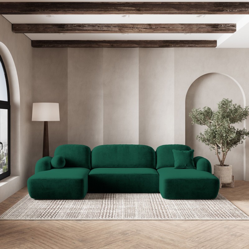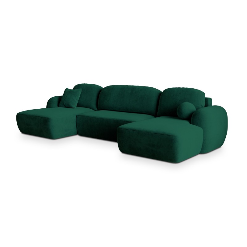 Masseno Narożnik SAVONA z funkcją spania i pojemnikiem na pościel Narozniki U, Rozkładana sofa - Butelkowa zieleń, KRONOS 19
