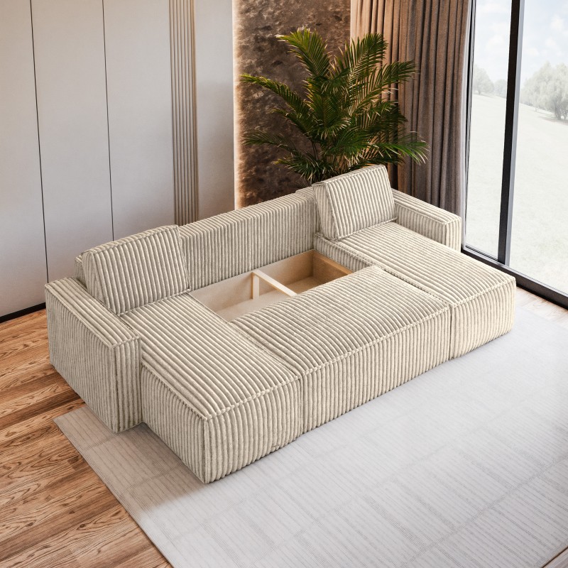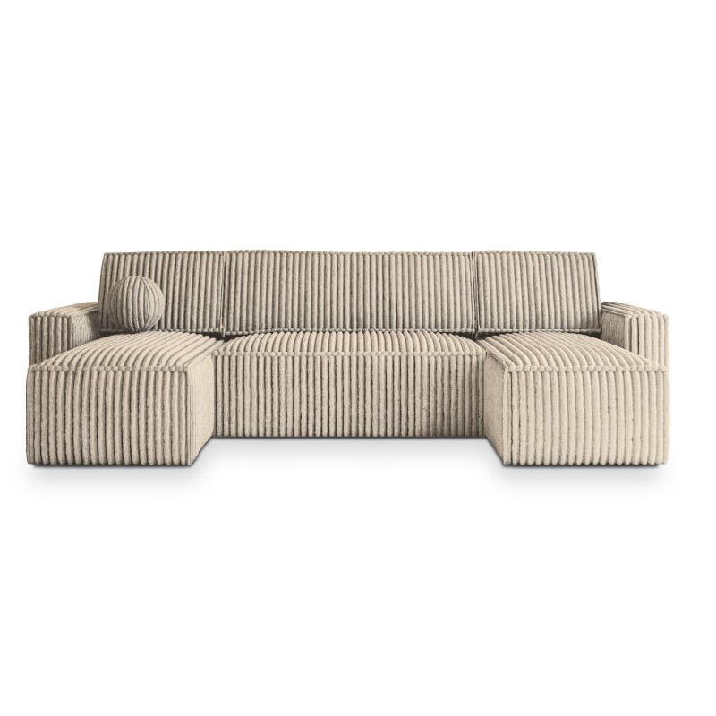 Masseno Narożnik PESANO z funkcją spania i pojemnikiem na pościel Narozniki U, Rozkładana sofa - Kremowy, TILIA 03
