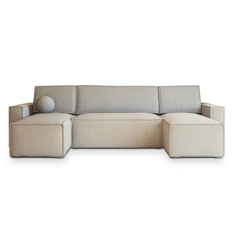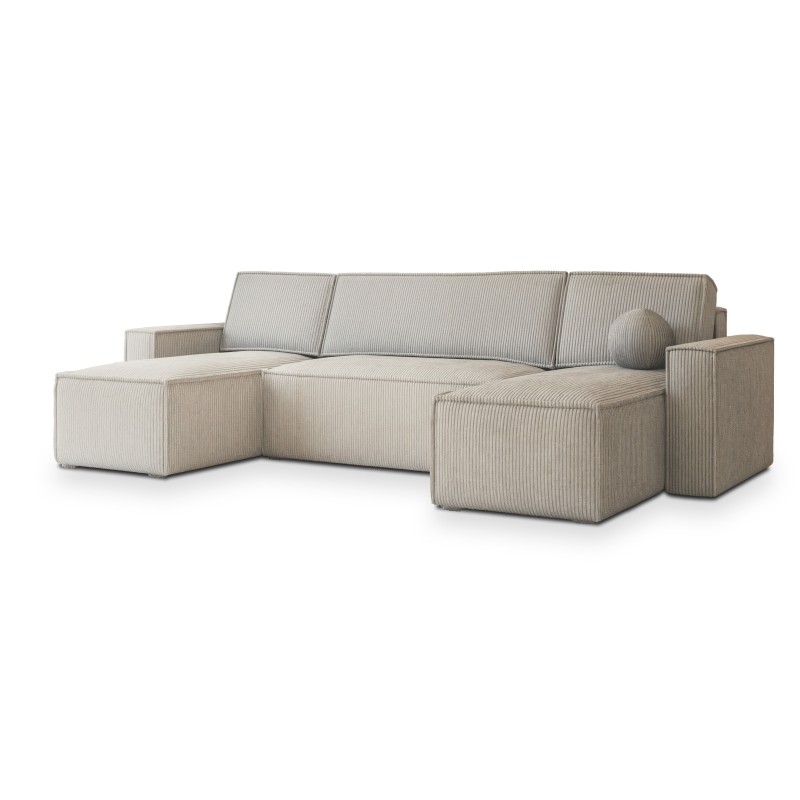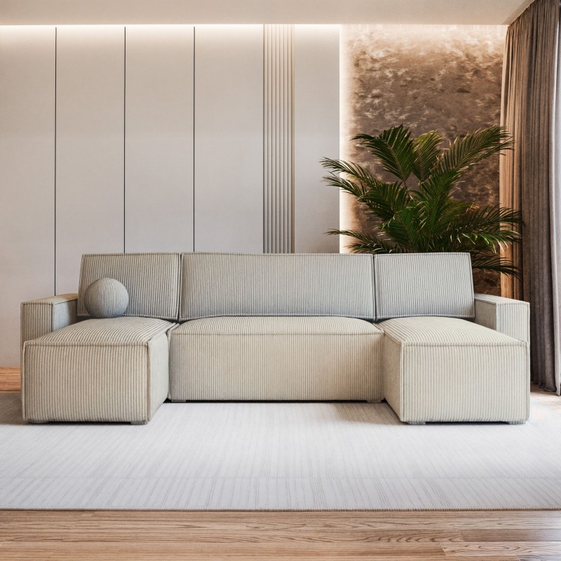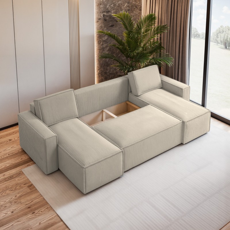 Masseno Narożnik PESANO z funkcją spania i pojemnikiem na pościel Narozniki U, Rozkładana sofa - Kremowy, POSO 100