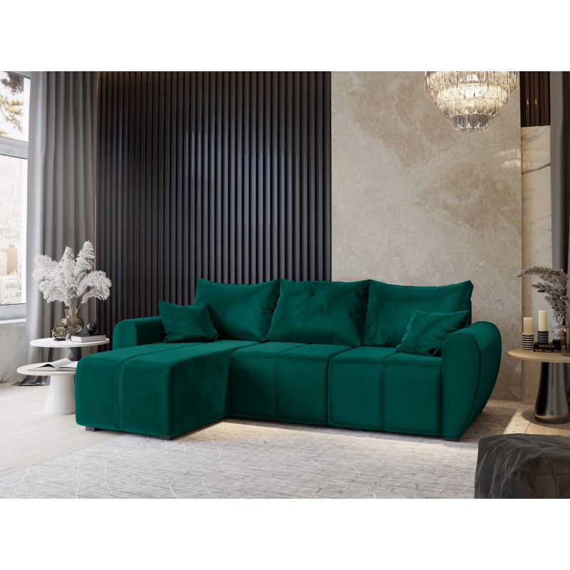 Masseno Narożnik MADISON z funkcją spania i pojemnikiem na pościel Narozniki L, Rozkładana sofa - Butelkowa zieleń, KRONOS 19