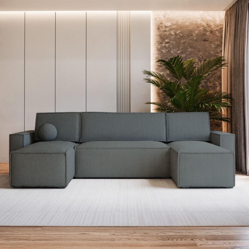 Masseno Narożnik PESANO z funkcją spania i pojemnikiem na pościel Narozniki U, Rozkładana sofa - Szary, POSO 60