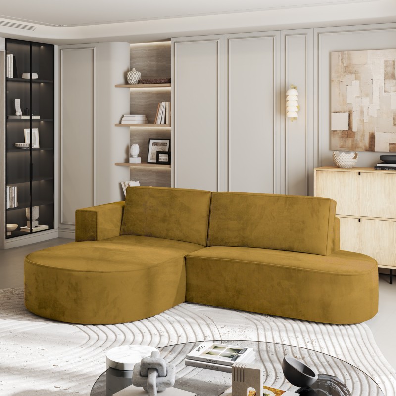 Masseno Narożnik CORTIO z funkcją spania i pojemnikiem na pościel Narozniki L, Rozkładana sofa - Żółty, MONOLITH 48