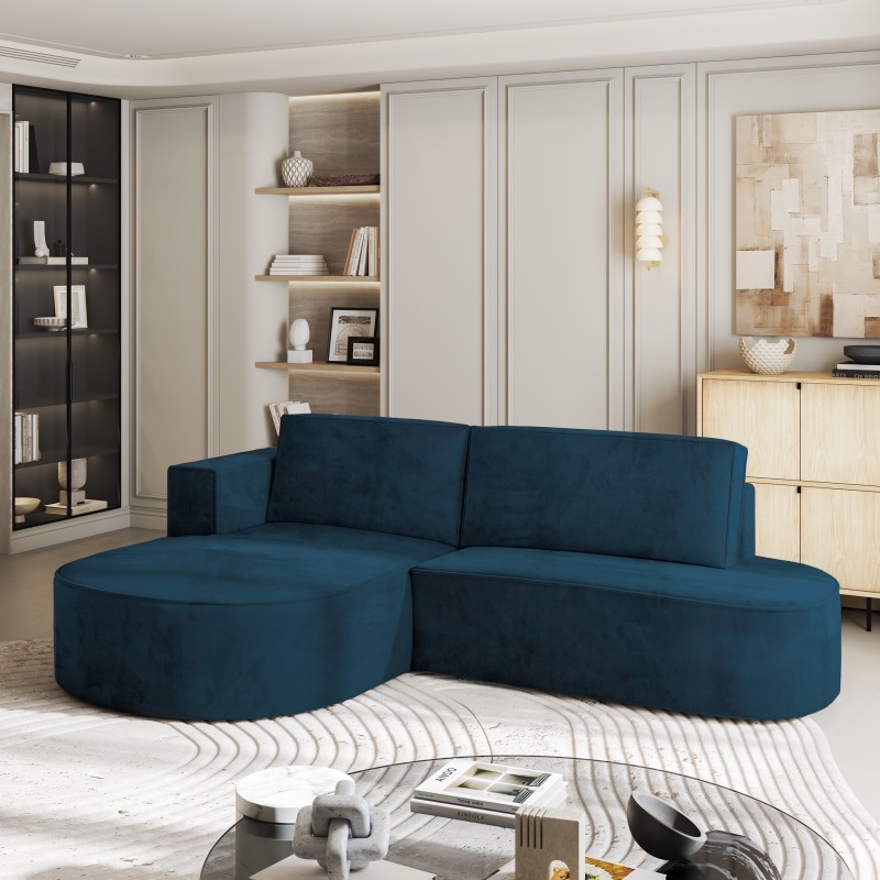 - Zaokrąglona otomana – miękki akcent i unikalny design. Obły kształt otomany przełamuje klasyczną geometrię narożników, nadając całości eleganckiego i nowoczesnego wyrazu. To także idealne miejsce do relaksu w pozycji półleżącej.