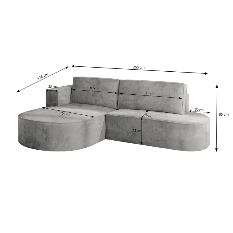 Narożnik występuje w wersji lewostronnej oraz prawostrnnej