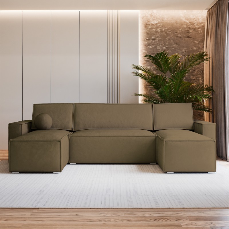 - Tapicerowany tył sprawia, że narożnik świetnie wygląda z każdej strony. Można go swobodnie ustawić także na środku salonu, jako centralny punkt aranżacji. Wolnostojący charakter – idealny do otwartych przestrzeni.