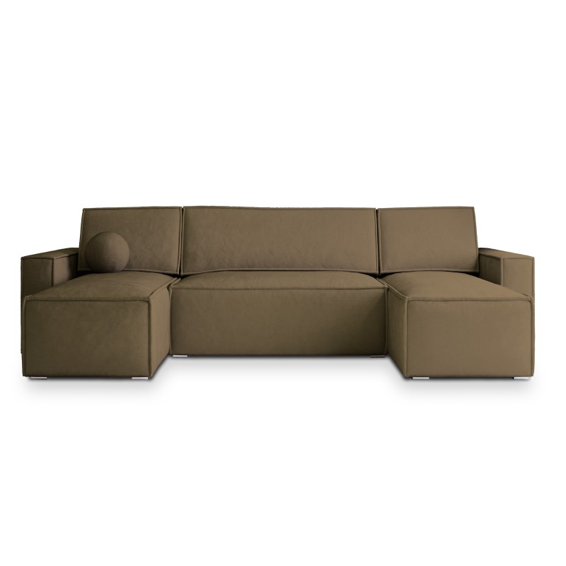 - Aksamitna, welurowa struktura z delikatnym połyskiem sprawia, że narożnik prezentuje się elegancko i stylowo. Dodatkowo tkanina posiada warstwę hydrofobową, co ułatwia utrzymanie czystości.