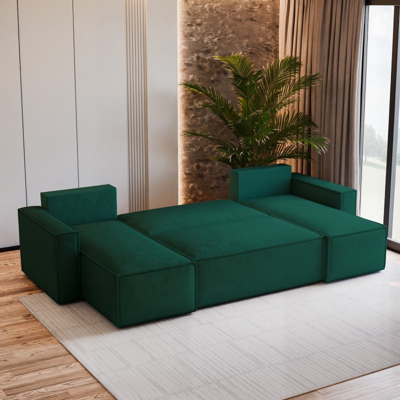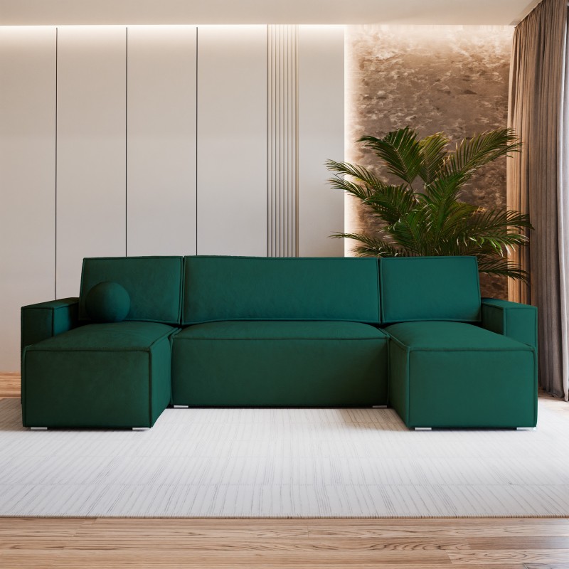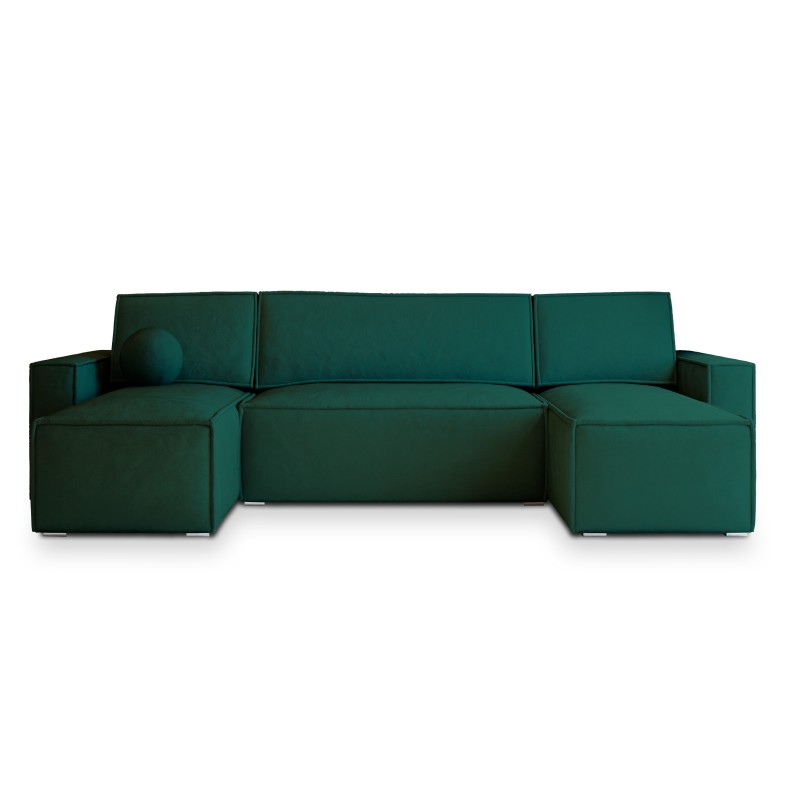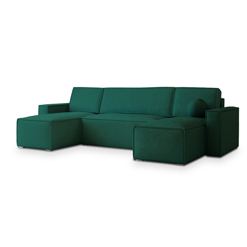 Masseno Narożnik PESANO z funkcją spania i pojemnikiem na pościel Narozniki U, Rozkładana sofa - Butelkowa zieleń, MONOLITH 37